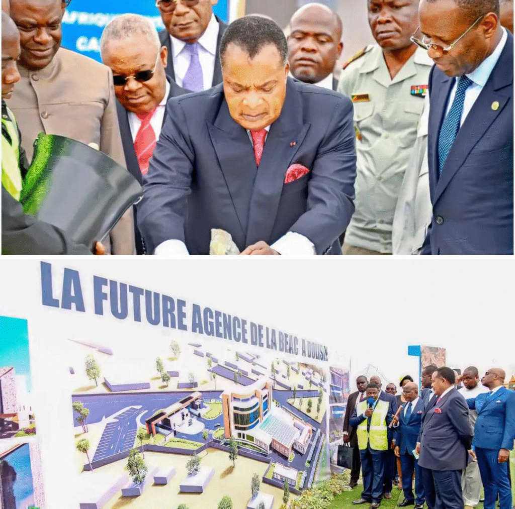 Le Président de la République, Denis Sassou-N’Guesso, a procédé, ce Jeudi 20 novembre 2025, à Dolisie (Niari), à la pose de la première pierre de construction du siège de la BEAC.